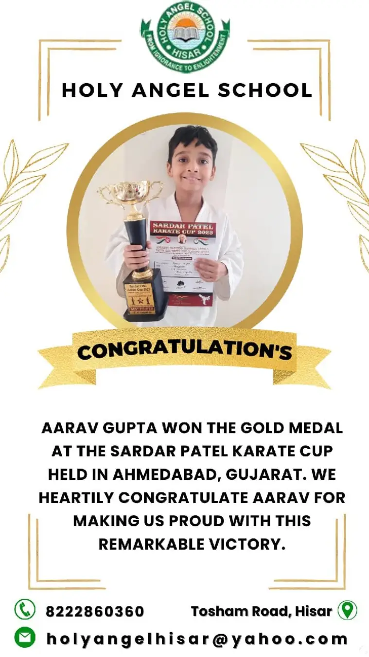 Aarav Gupta won Gold medal at The Sardar Patel Karate Cp, Ahmedabad, Gujarat.